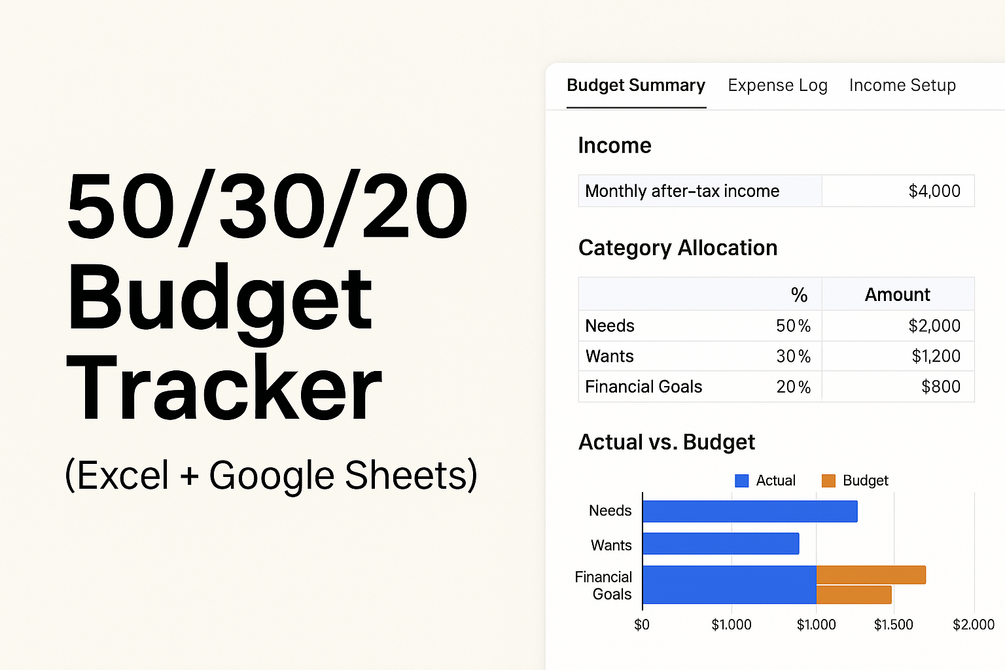 50/30/20 Budget Tracker (Excel + Google Sheets)